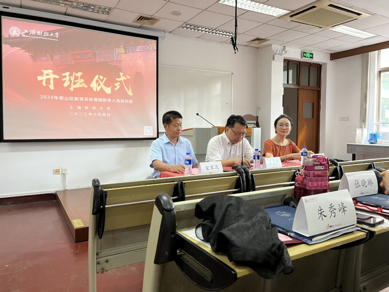 7月4日上午,由青岛市崂山区教体局主办,上海财经大学终身教育学院承办的“2023年教育系统高端财务人员培训班”开班仪式在上海财经大学顺利举行。崂山区教体局四级调研员宋军民、计划财务服务中心主任张倩、上海财经大学终身教育学院培训部主任朱志军出席开班仪式。