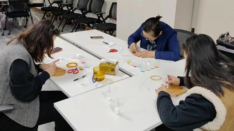 三月,一个花开的时节,在第114个国际劳动妇女节来临之际,为进一步展示女同志的优雅情怀和良好的精神面貌,3月7日上午,上财青岛研究院组织了一场别开生面的“三八”妇女节活动——掐丝珐琅手工制作。
