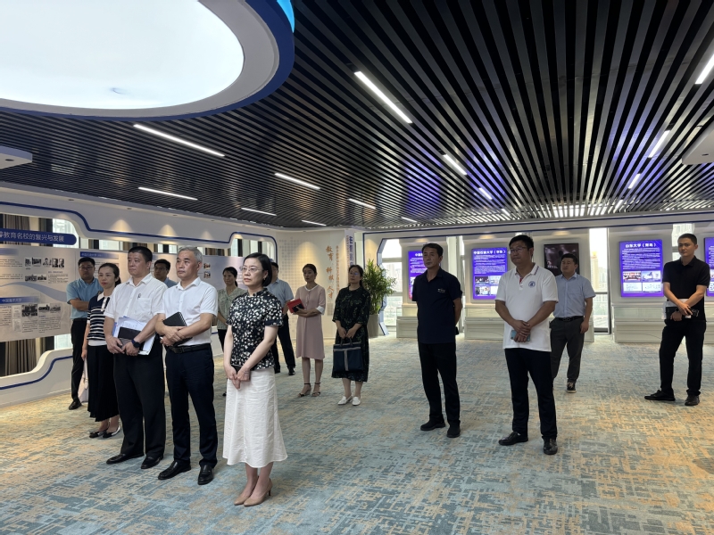 首先,与会嘉宾参观高等教育成果展厅,观看中心宣传片,了解青岛高等教育发展史以及在青高校、高等教育机构代表性科技成果转化案例。