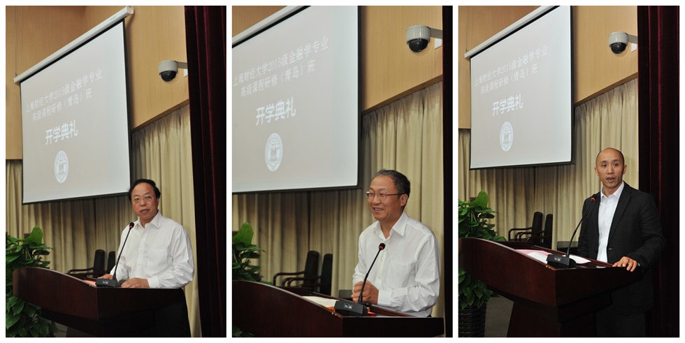 在当天的开学典礼上,青岛市副市长刘明君、上海财经大学副校长方华、上海财经大学研究生院副院长李劲松等领导致辞。