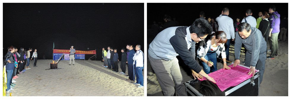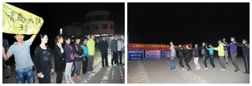在晚会现场,所有学员、教师被分为三组。各组选出队长、队秘,并各自取了队名。分别为“苹果队”、“青岛大侠队”和“上财有才队”。现场跳起了兔子舞,并点燃篝火。在2个小时的篝火晚会临近结束时,教练在沙滩上点燃烟花,现场氛围达到高潮。