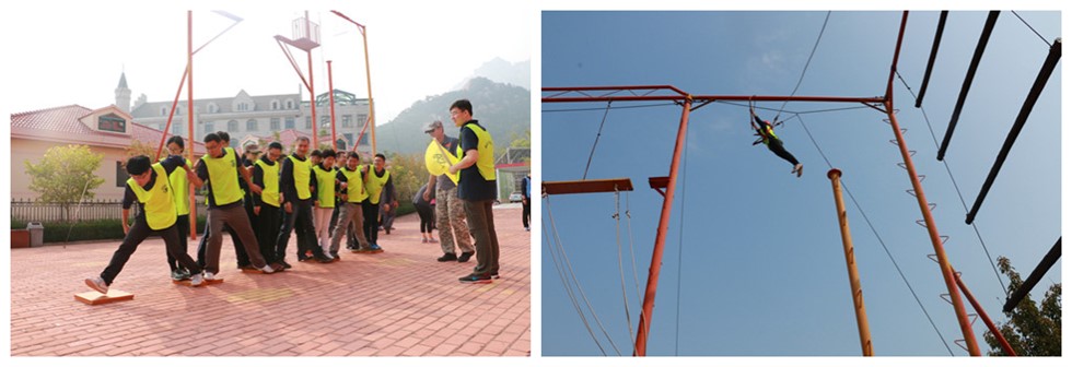 10月18日一大早,在教练的带领下,学员们整装列队进入素质拓展训练基地。当天上午的训练科目为:抢滩登陆、有轨电车、空中单杠三个项目。其中,抢滩登陆和有轨电车主要是为了训练团队合作,而空中单杠项目则磨练了学员的意志力。