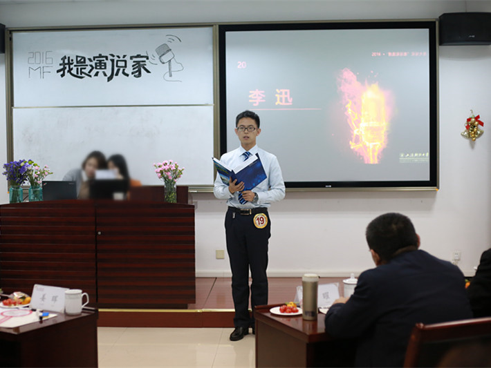 本次大赛的演讲主题为“不忘初心”,20位来自上财-伯克利2016级金融硕士的学生参赛并围绕主题结合自身成长经历展开演讲,演讲结束后由评委或该选手的职业导师进行评委,现场打分,并算出平均分。