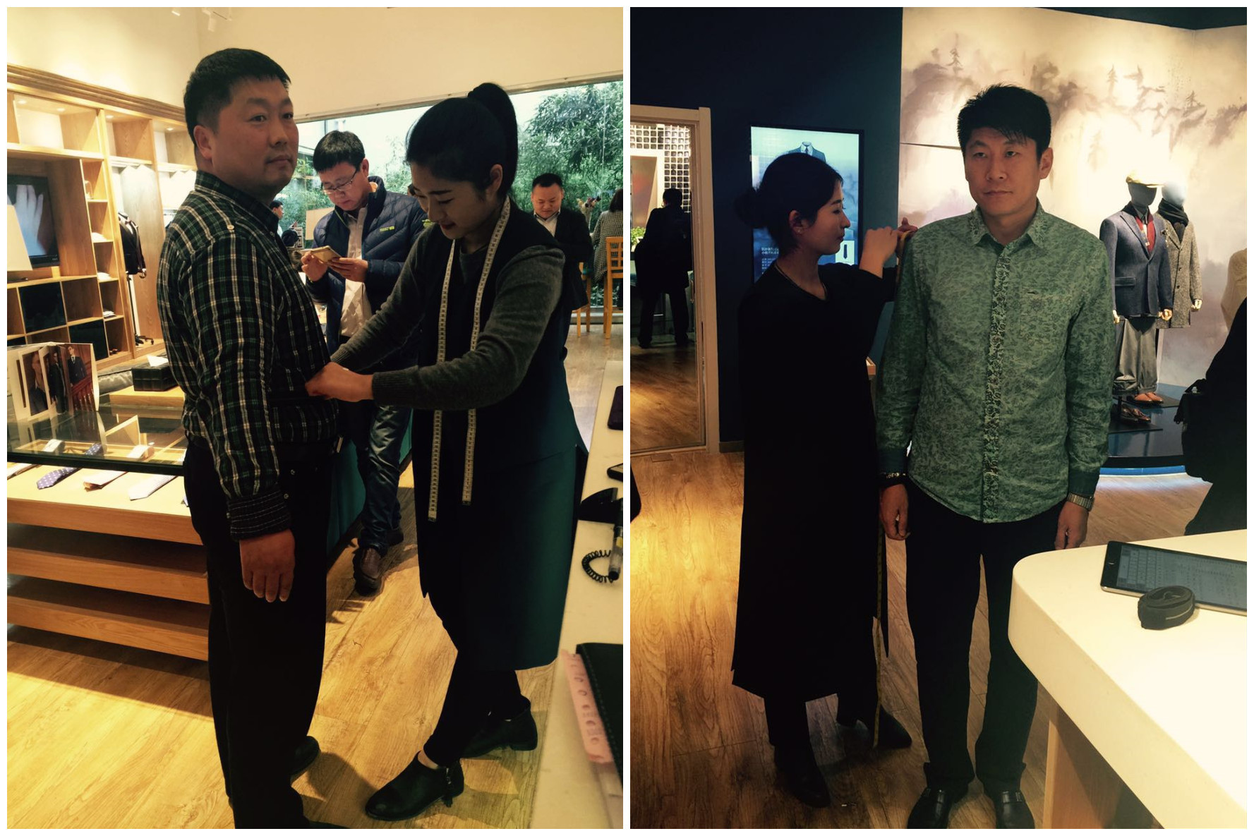 工厂参观结束后,同学们体验高端在线定制的过程。其中,第一步是量体。整个过程需要5分钟,量体师采集19个部位的22个数据。量体师介绍,顾客在下订单时,还需要对面料、花型、刺绣等几十项设计细节进行选择,或让系统根据大数据分析自动匹配。细节敲定后,订单将被传输到数据平台,系统会自动完成版型匹配,并传输到生产部门。七个工作日之后,顾客就会收到私人定制的服装。