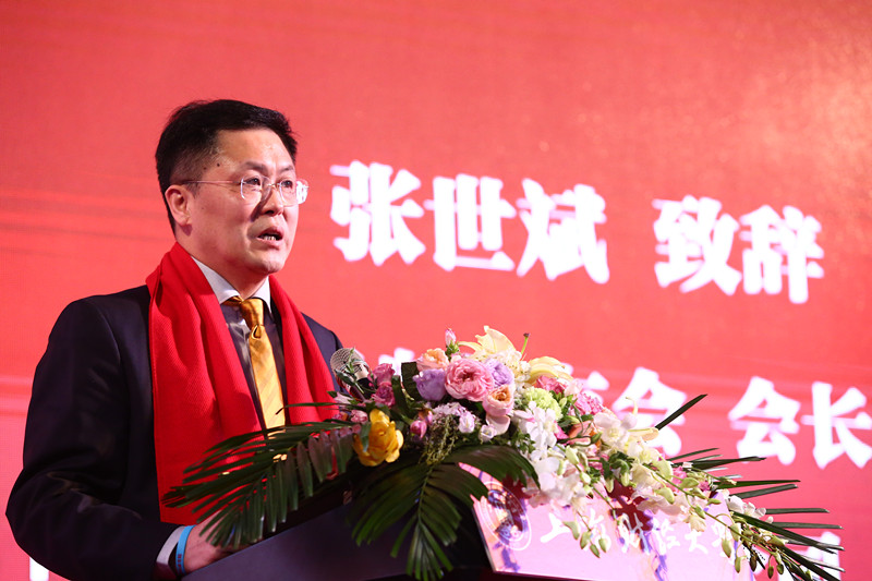 上海财经大学杰出校友、青岛国际投资有限公司董事长张世斌在致辞中表达了对母校的深厚感情,并介绍了青岛校友会的发展情况。