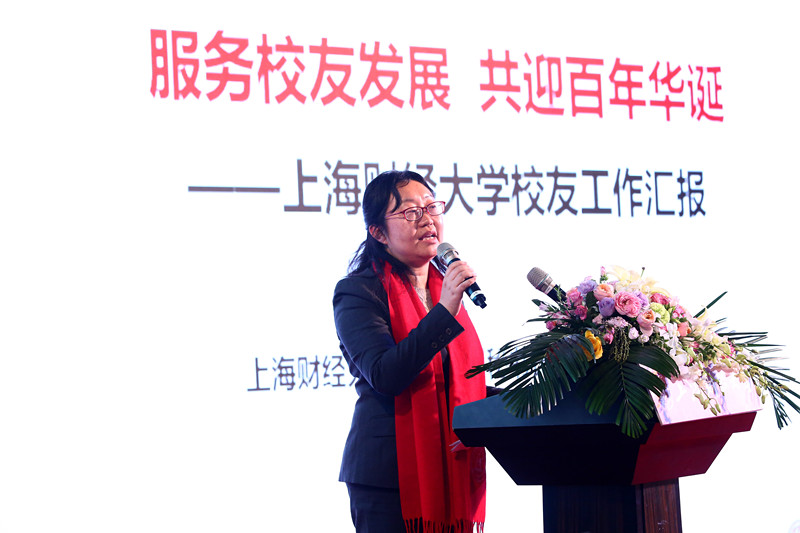 陈红梅在致辞中,从组织建设、制度建设、文化建设以及校友支持母校方面介绍了上海财经大学2016年校友工作情况,并就百年校庆的相关情况进行了通报。