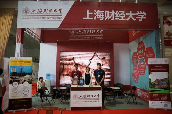 为响应本届财富管理博览会“服务实体经济,普惠百姓民生”的主题,上海财经大学青岛财富管理研究院在博览会现场开设展台,展示成立两年多以来在青岛开设的教育项目。在为期三天的展览中,上百位企业高管、金融从业者和市民依据自身的职业发展规划和学习意向,针对学历学位教育项目、学位教育项目、高级课程研修班等教育项目进行了现场咨询。