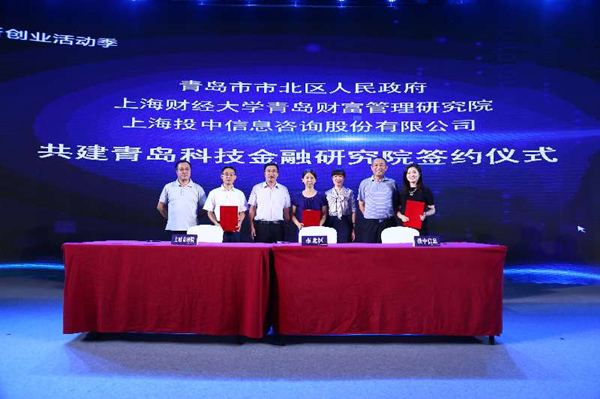 在晚上举行的“天使之夜”招商推介会中,3家优秀企业依次进行了成果展示。随后,青岛市市北区政府、上海财经大学青岛财富管理研究院与上海投中信息咨询股份有限公司三方共同签署了战略合作框架协议,共建青岛科技金融研究院。旨在为青岛市合作的金融结构及金融管理研究所提供私募股权市场工具产品CVSource数据库,根据青岛市经济产业发展,提供综合建议方案,为青岛市在未来金融聚集区发展建设道路中提供全方位支持。