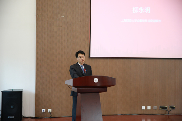 上海财经大学金融学院常务副院长柳永明致辞。值此上财百年校庆之年,柳永明首先代表金融学院对2017级新同学的加入表示热烈欢迎。接着,他从上财的“昨天”和”今天”出发,讲解了金融学院在发展中形成的办学理念和办学特色,“自1980年开始招收的研修班为社会培养了大量金融人才,金融学院也在人才培养和科学研究方面发展飞速,根据统计,上财毕业生的就业竞争力位居全国第三”。最后,柳永明对同学们提出了几点要求,他勉励新生在提升自身知识技能的同时,要严格以上财校友的身份要求自己,传承追求卓越的上财精神,为续写学校的精彩明天贡献力量。