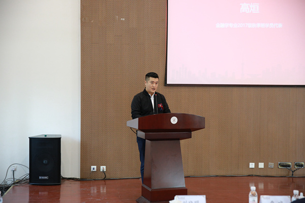 2017级金融学专业高级课程研修(秋季)班的高烜代表新学员发言。他表示,各位同学们经历了工作的锻炼和磨砺,重新汇聚在上财校园里的机会来之不易,在未来的修业过程中,定会努力克服生活和工作中的阻碍,“不忘初心,方得始终”。