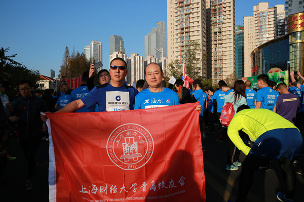 11月5日上午,由中国田径协会、青岛市人民政府共同主办的2017青岛国际马拉松比赛在青岛鸣枪开赛。借由此次比赛,青岛校友会组织举行了“百年上财,永不止步”的马拉松竞速活动,并派出16位校友组成的青岛校友跑团,在比拼意念和耐力的马拉松比赛中奋勇争先,表现上财人的精神风貌,为母校献上百岁生日祝福。