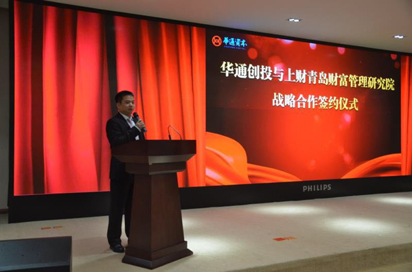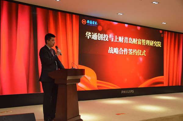 姜晖院长在致辞中表示,将充分发挥上海财经大学的高端资源优势,提供智力支持,通过与华通创投的合作,依托青岛本地优势,在人才培养、研究咨询、启民服务等三大方面为青岛金融业的发展提供强有力的支持,积极参与到青岛金融综合改革试验区的建设中,实现共赢战略目标。