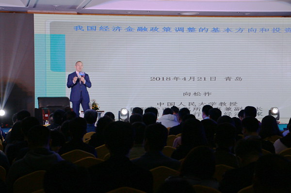 4月21日下午,由上海财经大学青岛财富管理研究院、青岛金家岭金融聚集区管理委员会和福建美西投资共同主办的第32期“青岛金融家俱乐部•金家岭财富管理沙龙”在世园集团大厦成功举行。中国人民大学国际货币研究所理事兼副所长向松祚博士应邀以“中国经济金融政策调整的基本方向和投资趋势”为题作主题演讲。