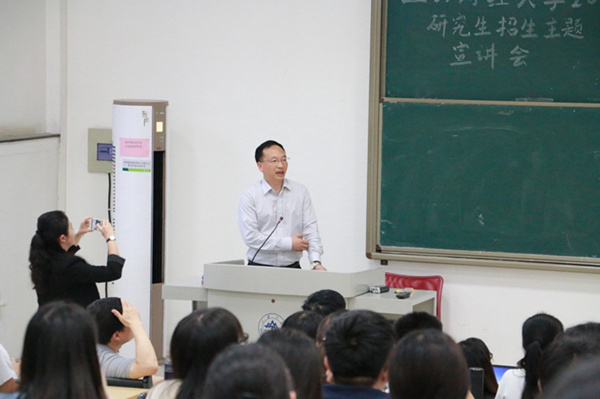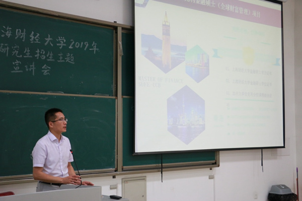 6月4日,上海财经大学2019年首次研究生主题宣讲活动在山东大学中心校区成功举行。本次招生宣讲会由上海财经大学研究生院组织,金融学院、公共经济与管理学院、统计与管理学院、会计学院、信息管理与工程学院、青岛财富管理研究院等院系相关负责人出席活动并进行了主题演讲。