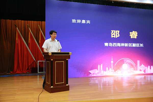 随后,青岛西海岸新区副区长邵睿代表青岛西海岸新区工委管委向远道而来的嘉宾表示了诚挚的欢迎,向关心支持新区建设发展的上海财经大学校友会表示了衷心的感谢。在致辞中,他回顾了新区成立四年来的发展历程和取得的丰硕成果。他表示,实体经济是发展之根,金融是实体经济之血脉,为深入学习贯彻党的十九大精神和习近平总书记在山东考察时重要讲话要求,新区重点打造了绿色金融中心。今后,新区将继续秉承创新、务实、高效的工作作风,努力营造更优质的服务和营商环境。