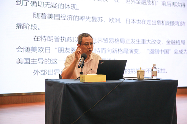 在两个半小时的演讲中,贾康紧密围绕全球金融格局演变动态,中国扩大内需优化结构、改革开放创新图强的具体战略,以及新旧动能转换大背景下的地方金融风险防范与创新发展等三大主题阐述了自己的观点和看法。