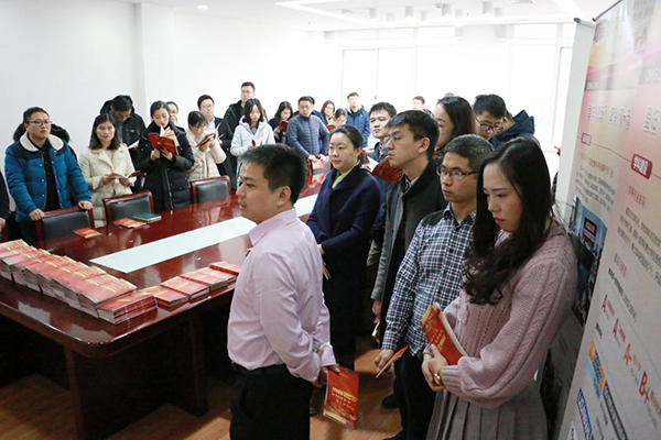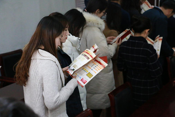 在场员工认真阅读学习了专题展纪念手册,并在听取执行院长姜晖的讲话和校史解读后备受鼓舞,表示期待学校能够百尺竿头、更进一步的同时,也会将“厚德博学 经济匡时”的校训精神融入工作中与上财共同成长。