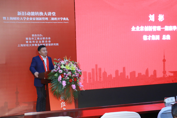 德才集团总裁、企业家创新管理一期班学员刘彬代表老学员,在发言中分享了上财企业家创新管理课程班的学习收获和感受。他说,“在这个瞬息变化的时代,只有不断学习和充实自己,才能更好地为企业服务,在这里不仅有教授和实战家为我们答疑解惑,还与各行各业的同学们建立起了深厚的友谊。”