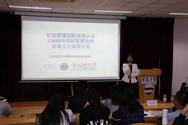 5月15日下午,上海财经大学青岛财富管理研究院与青岛大学经济学院共同举办的“CWM 特许财富管理师校园之星培养计划”说明会在青岛大学顺利举行。