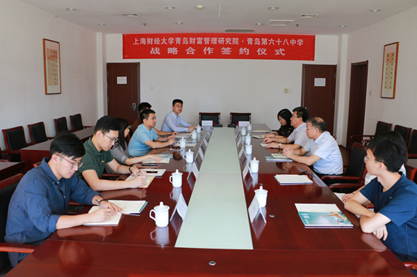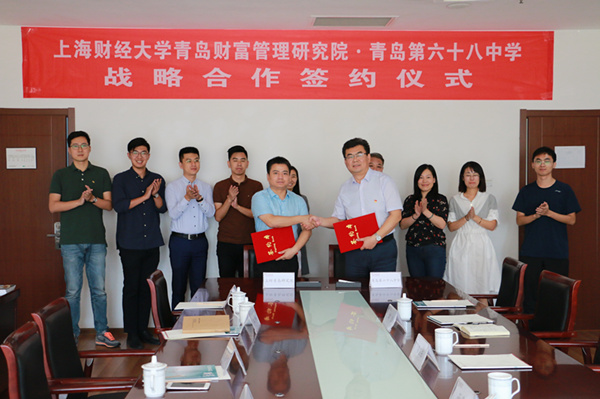 9月23日,上海财经大学青岛财富管理研究院与青岛第六十八中学战略合作签约仪式在上财青岛研究院顺利举行。