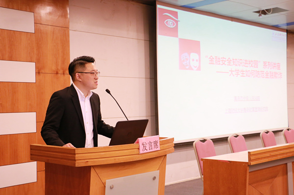 我院执行院长姜晖在讲话中对当前的金融安全形势进行了介绍,并分析了防范校园金融安全问题的必要性和紧迫性,希望通过金融安全知识公益讲座这个平台让更多大学生学习更多金融专业知识,提高防范金融风险意识。