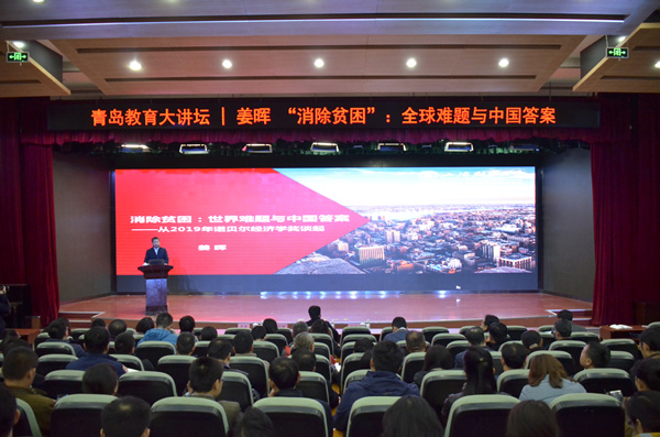 11月20日下午,由青岛市教育局主办的“青岛教育大讲坛”第九讲在青岛二中分校学术报告厅举行,我院执行院长姜晖受邀进行了题为“消除贫困:全球难题与中国答案——从2019年诺贝尔经济学奖说起”的主题讲座。青岛市教育局副局长、党组成员王铨主持会议,来自青岛市教育局近200名机关工作人员参加了本次活动。