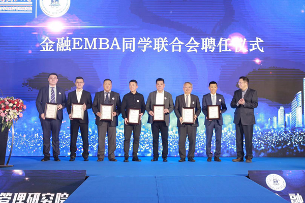 随后,我院执行院长姜晖、院长助理文超,橡胶谷集团董事长张焱、青岛济青冻品集团董事长高长征等共同为“金融EMBA同学联合会”举行成立仪式,并为理事会成员颁发聘书。聘任张焱为金融EMBA同学联合会主席,高长征、宫立新、纪公胜、林浙挺、太成男、文超、王宏涛为副主席,王沛受聘为秘书长,陈守军、刘翔、王丽萌、王言飞、于瑶、张瑞红、张小军为副秘书长,另聘任楚彬等38位成员为理事。