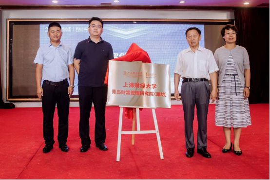 随后,原中共潍坊市委常委、秘书长李光信,上海财经大学青岛财富管理研究院直属党支部书记潘海澄,中共奎文区委常委、统战部部长王丽君,山东德锦资产管理有限公司董事长于其岭,共同为上海财经大学青岛财富管理研究院(潍坊)教学中心揭牌。
