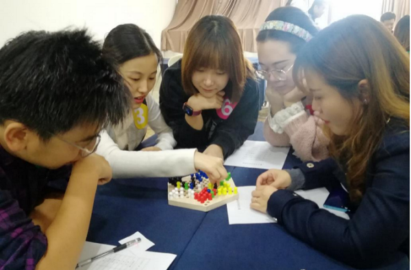 伴随着暖场音乐的响起,智力运动会正式拉开帷幕。在第一个“棋开得胜”环节中,选手们分成六支队伍,在棋盘上展开比拼。为了团队的胜利,选手们紧盯棋盘、避实击虚,表现出良好的竞技状态和参与热情。
