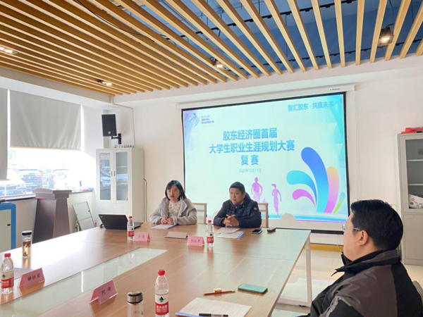 2020年12月11日,由我院承办的胶东经济圈首届大学生职业生涯规划大赛复赛在青岛市大中专毕业生就业指导中心会议室如期举办。此次大赛由山东省人力资源社会保障厅指导,青岛、烟台、潍坊、威海、日照五市人力资源社会保障局联合有关高校共同举办。