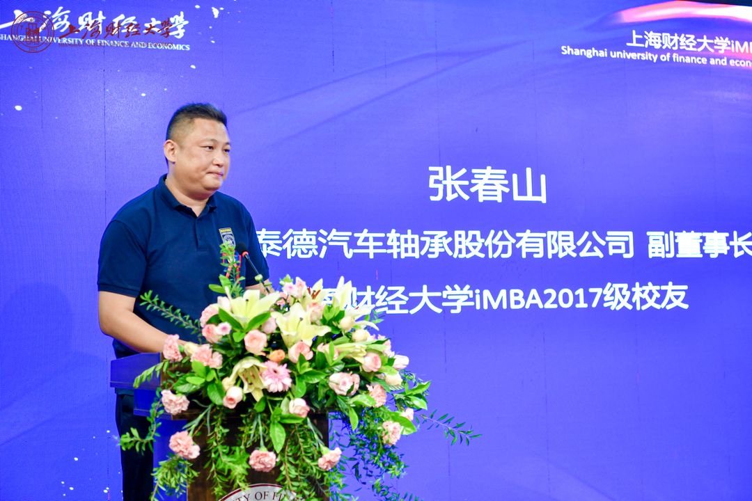 上海财经大学iMBA2017级校友、青岛泰德汽车轴承股份有限公司副董事长张春山作为校友代表发言,为大家传授“过来人”的经验。他回忆了自己的奋斗历程,以多年的职业发展经验勉励新生们:希望各位在未来求学的道路能够共同进退,相互成就,一起去收获“春风化雨乐未央”的喜悦、体悟“学问笃实生光辉”的真谛,在百年上财成就最好的自我。
