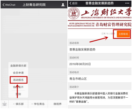 会员申请审核通过后,请点击【俱乐部】→【活动报名】→【立即报名】,活动具体信息将以短信的形式发送您。