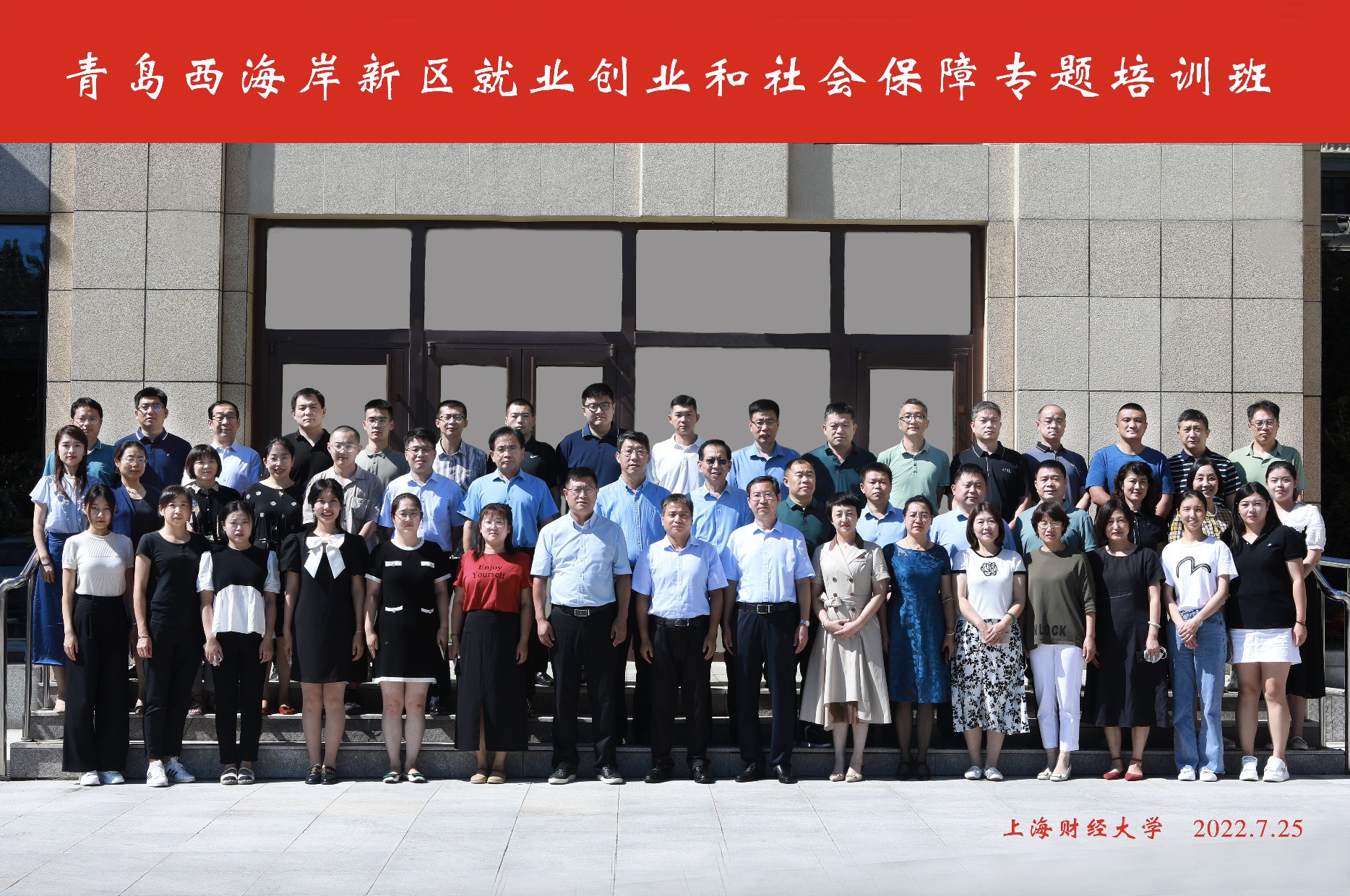 为进一步提升全区就业创业和社会保障工作整体水平,更好地促进地区经济社会的持续发展和保障人民群众的切身利益,7月25日,青岛西海岸新区《就业创业和社会保障专题培训班》在我院开班。西海岸新区人社局出席开班仪式并作讲话,学员一行46人参加本次培训。
